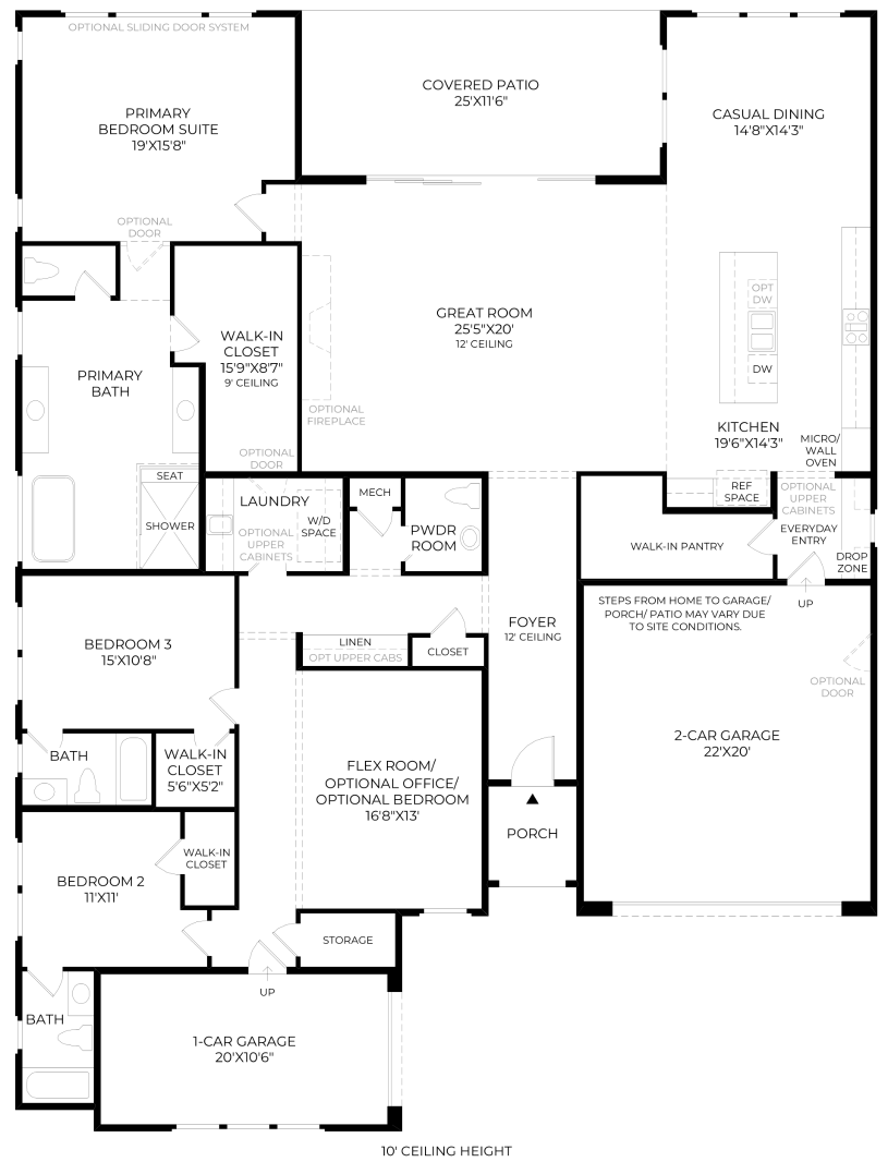The Manchester’s stunning design offers exceptional single-story living. An alluring extended foyer offers views to the airy great room and beautiful covered patio beyond. Adjacent is a bright casual dining area and a well-designed kitchen defined by a large center island with breakfast bar, plenty of counter and cabinet space, and a generous walk-in pantry. The magnificent primary bedroom suite is enhanced by an oversized walk-in closet and a serene primary bath with dual vanities, a soaking tub, a luxe shower with seat, and a private water closet. Secondary bedrooms, one with a walk-in closet, the other with a sizable closet, feature private baths. Additional highlights include an ample flex room, easily accessible laundry, a powder room, an everyday entry with drop zone, and plenty of extra storage.